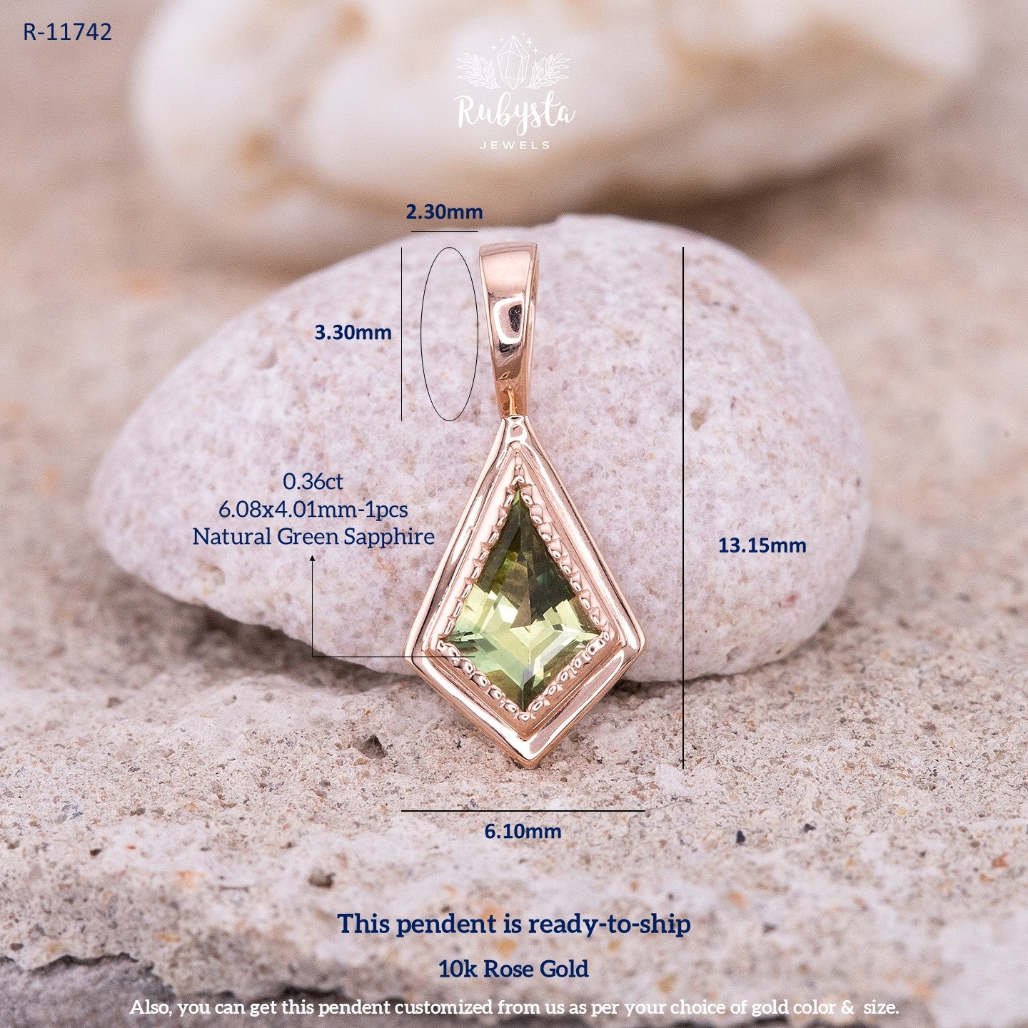 A refined celebration of color and craftsmanship, this Natural Green Sapphire pendant is a beautifully elegant addition to the Rubysta Jewelry collection. Handcrafted in our Bangkok studio, the pendant features a 0.36ct natural Green Sapphire framed in warm 10k rose gold, creating a soft and luxurious contrast that feels effortlessly elevated.