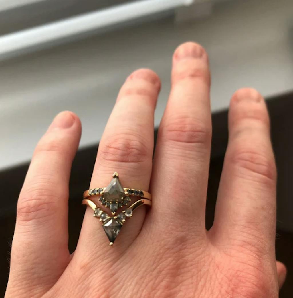 I bought this ring to pair with my engagement ring from a different company. Rubysta requested a few measurements and customized it to the best of their ability with that information. When I first received the ring it didn't quite fit my engagement ring. However, Rubysta graciously accepted it back to further customize and now it looks like it was meant for my ring. The custom stone at the end is gorgeous and I am beyond happy with everything. I will be recommending Rubysta to anyone I know ring shopping!